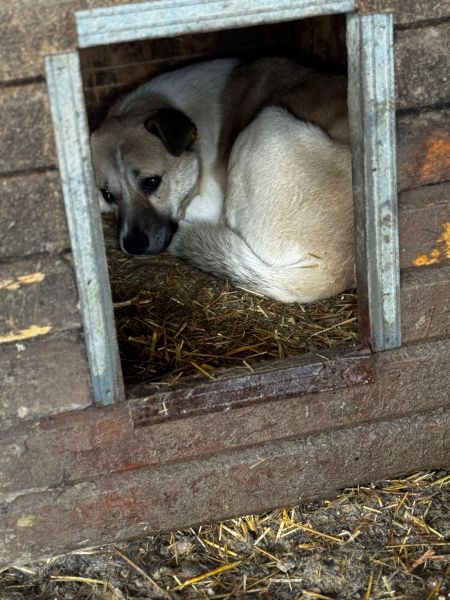 PEER ist ein hübscher, junger Rüde, der gerade erst beginnt, die Nähe von Menschen kennenzulernen. Als wir ihn besucht haben, hielt er sich zunächst in seiner Hütte auf. Man merkt ihm an, dass ihm menschlicher Kontakt noch fremd ist.