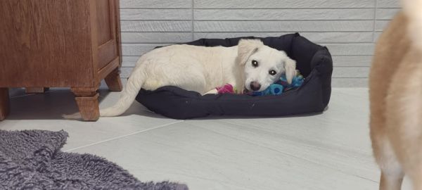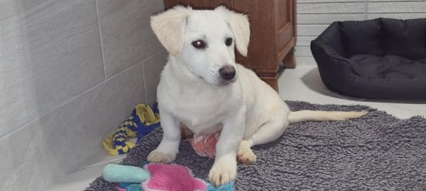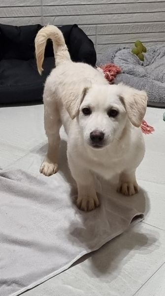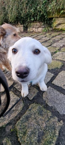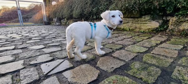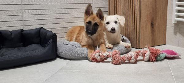 | Wesen & Zutraulichkeit (Character & Trustworthiness) | welpentypisch (typical for puppies), verspielt (playful), offen (open), freundlich (friendly), neugierig (curious), sehr menschenbezogen (very people-related), gerne anfassbar (likes to be touched), überall anfassbar (touchable everywhere), anfassbar (touchable), nimmt Leckerchen (takes goodies), zutraulich (trustful), benötigt Eingewöhnungszeit (takes time to settle in) |