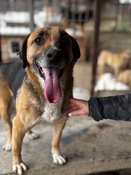 PEPPONE begrüßte uns mit großer Freude, als wir seinen Kennel betraten. Man merkte ihm an, wie sehr er die Zuwendung der Menschen genoss. Er wollte wahrhaftig in uns hineinklettern. Wahrscheinlich hatte er in seinem bisherigen Leben schon einmal einen Menschen an seiner Seite. Im Shelter wirkte er jedoch überfordert und verzweifelt. Er lebt verträglich in einer gemischten Gruppe. Wir hoffen sehr, dass der menschenfreundliche PEPPONE bald ein neues Zuhause findet.