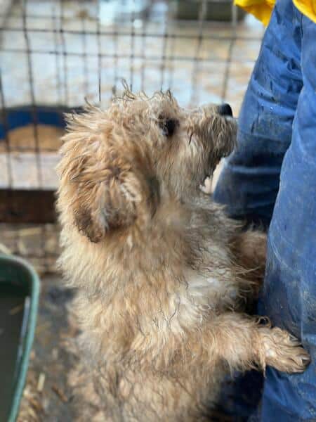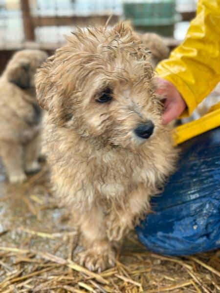 | Wesen & Zutraulichkeit (Character & Trustworthiness) | welpentypisch (typical for puppies), verspielt (playful), offen (open), freundlich (friendly), sehr menschenbezogen (very people-related), gerne anfassbar (likes to be touched), zutraulich (trustful) |