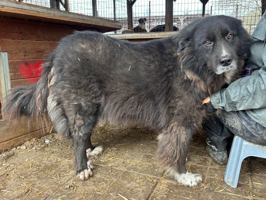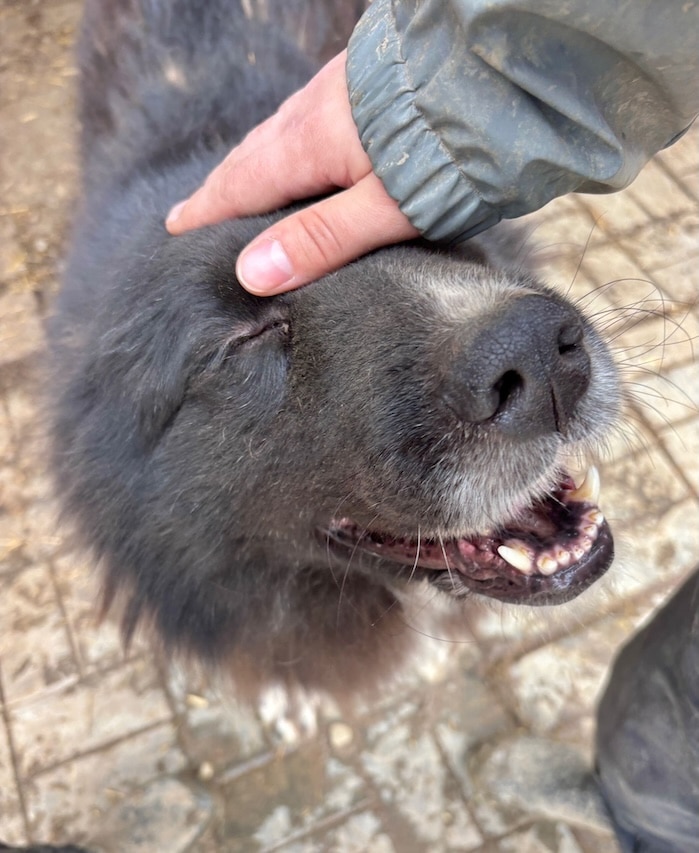 POLLIE ist eine schwarze Schönheit, die so klein in der Hütte wirkte, als sie so über den Hüttenrand lunzte. Als sie dann aus der Hütte kam, entdeckten wir ihre ganze Schönheit, doch ihr Fell ist leider schon verfilzt. Sie freute sich über unsere Leckerlis und wirkte freundlich und aufgeschlossen.