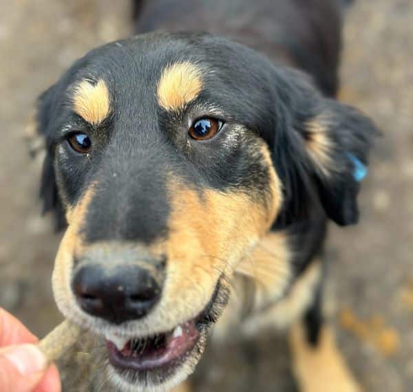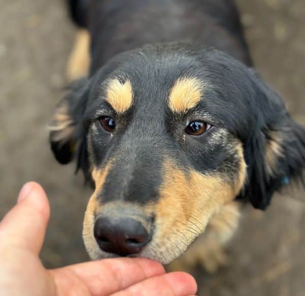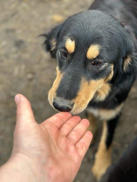 Sie ist nicht nur wunderschön, sondern zeigte sich auch ausgesprochen nett. Sie leckte uns die Hand ab und sprang freudig um uns herum. Das lange Video im Slowmodus zeigte ihre Art sehr gut. Sie wäre nach wenigen Tagen zutraulich.