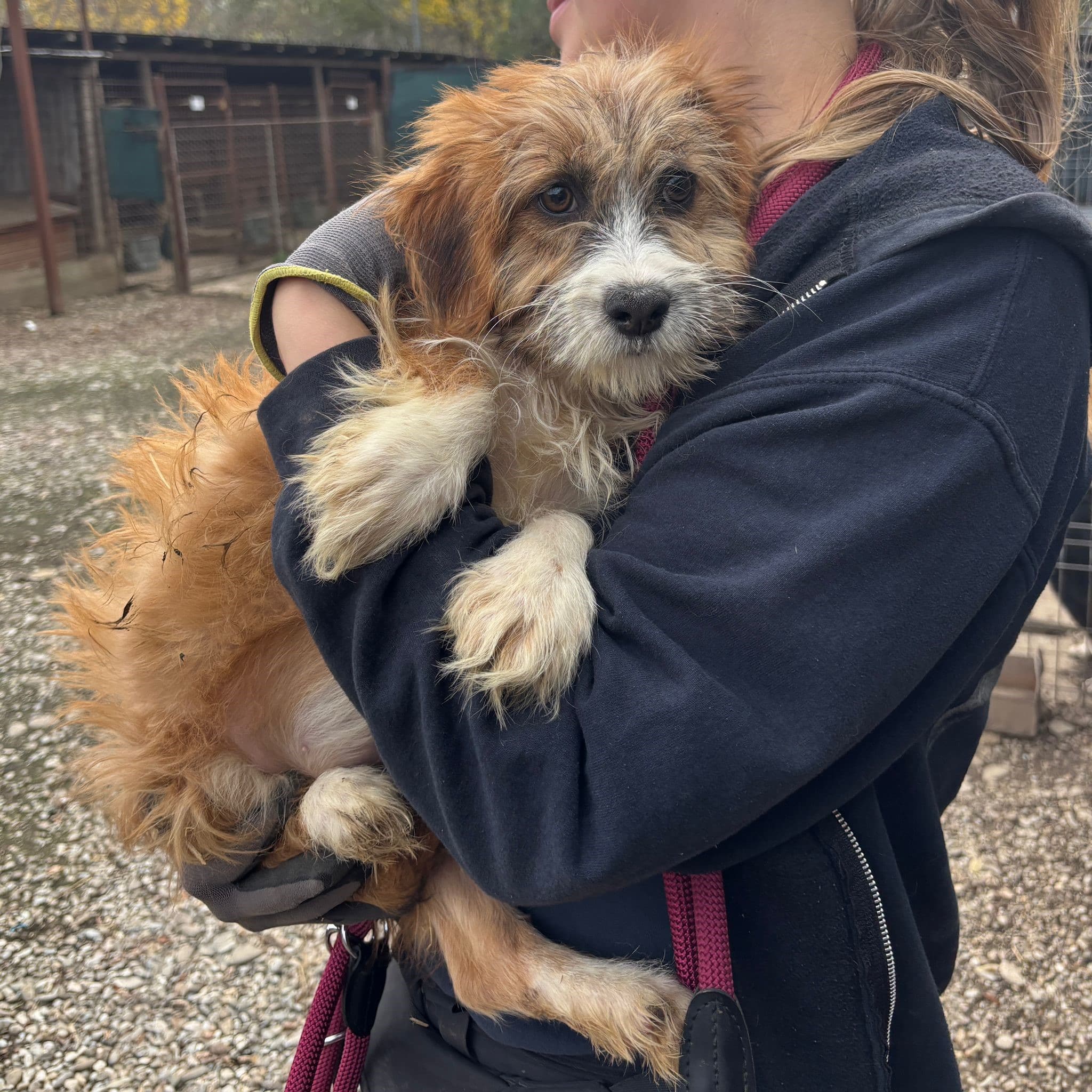 Die zuckersüße kleine POLLY zeigte sich auch bei diesem Besuch als freundliches und aufgeschlossenes Welpenmädchen. Gern ließ sie sich streicheln und auf dem Arm halten und genoss den kurzen Moment der Zuwendung. All ihre Geschwister sind bereits reserviert und dürfen bereits in wenigen Tagen mit dem Trapo ins Glück reisen – nur POLLY bleibt allein zurück, wenn sich jetzt kein Platz für sie findet. Wir wünschen dem lieben Mädchen, dass auch sie nun gesehen wird und ihr der Winter im Shelter erspart bleibt.
