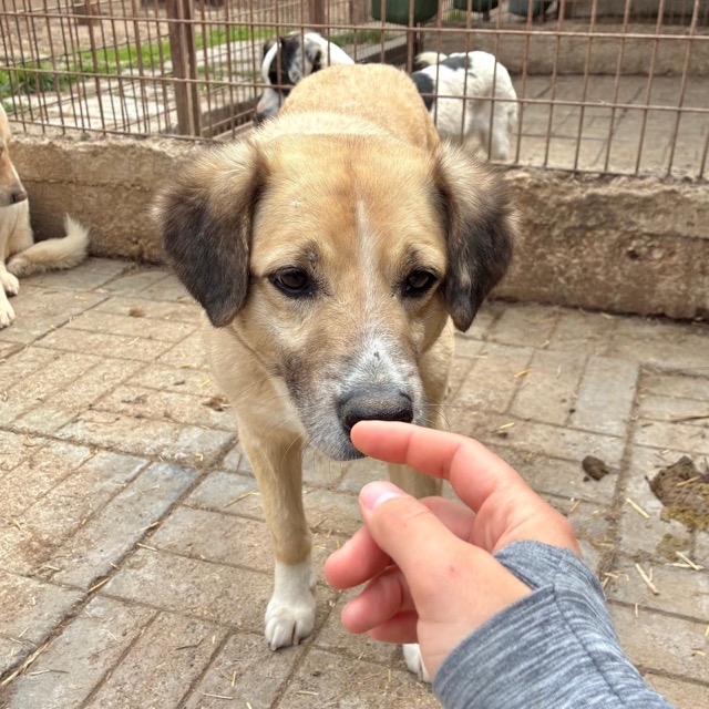PONTO beobachtete uns neugierig als wir seinen Kennel betraten. Als wir uns ihm zuwandten, nahm er gerne unsere Leckerchen. Für mehr fehlte ihm der Mut. Wir suchen für PONTO verständnisvolle Menschen die zusammen mit ihm Vertrauen aufbauen. Ein netter Ersthund würde ihm die Eingewöhnung sicher erleichtern.