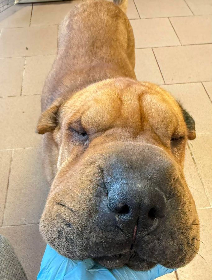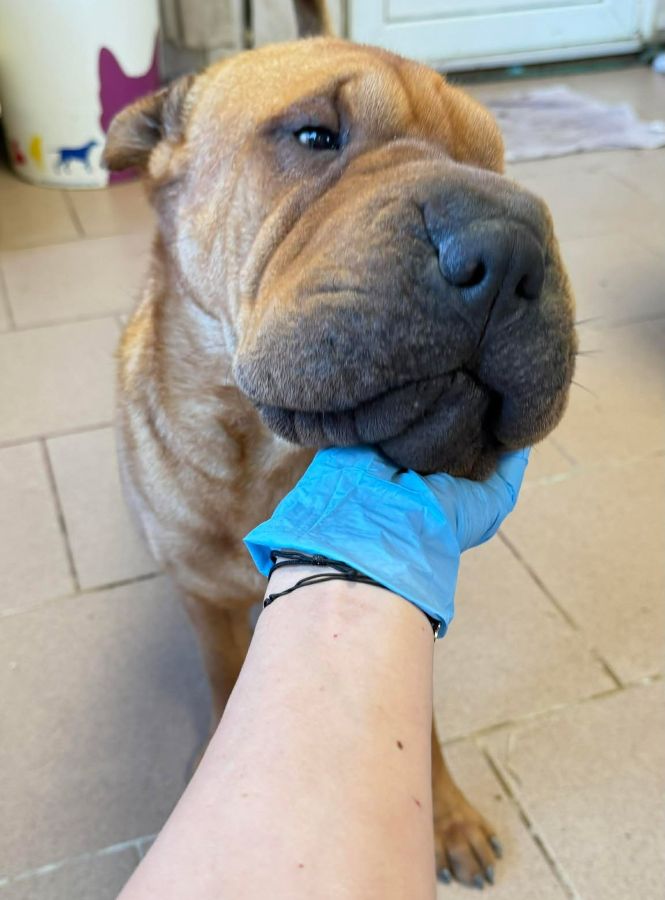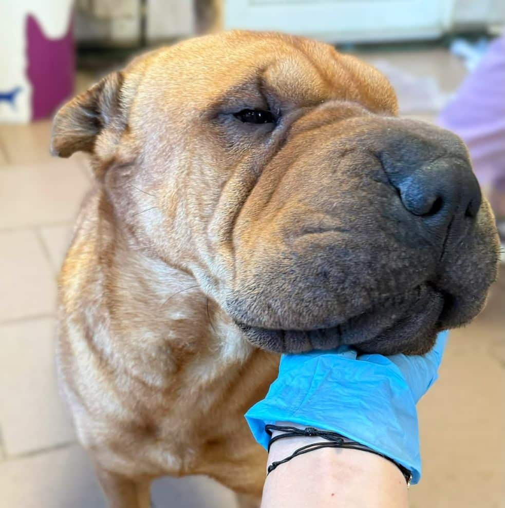 PRADA ist eine besonders verschmuste Hündin mit einem süßen Knautschgesicht, ganz typisch für einen Shar-Pei-Mix. Trotz des hektischen Shelter-Alltags nutzt sie jede Gelegenheit, um sich noch ein paar extra Streicheleinheiten von den Tierschützern vor Ort abzuholen.