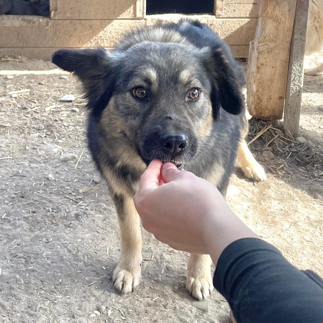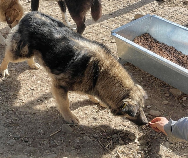 Diese wunderschöne Hündin war bei unserem Besuch noch recht neu in Bucov und entsprechend beeindruckt von der Gesamtsituation. Sie taute aber bereits nach kurzer Zeit etwas auf und zeigte sich uns gegenüber neugierig und interessiert. So nahm sie bereits unsere Leckerlies aus der Hand. Zum Anfassen lassen fehlte ihr leider doch noch der Mut, auch wenn sie nicht besonders ängstlich, sondern eher eingeschüchtert wirkte. Mit ihren Artgenossen zeigte sie sich verträglich.