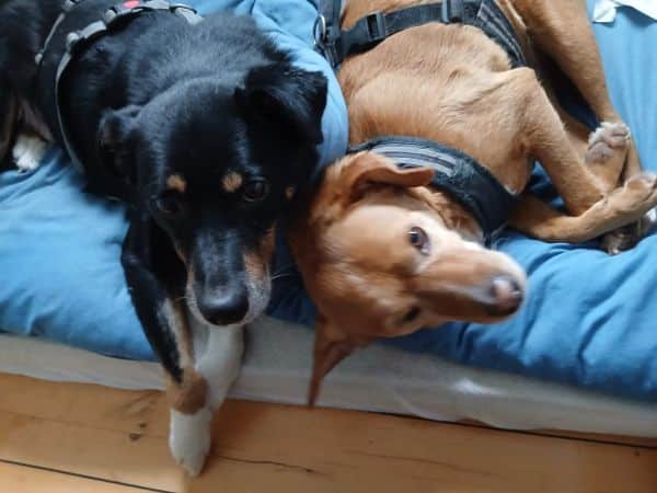 Primo kann auch schon stundenweise alleine bleiben. Dabei kann es vorkommen, dass er direkt nach dem Verlassen erst einmal bellt, die meiste Zeit nutzt er dann aber zum Dösen. Er zeigt währenddessen auch kein destruktives Verhalten, wie das Zerlegen der Wohnung etc.
