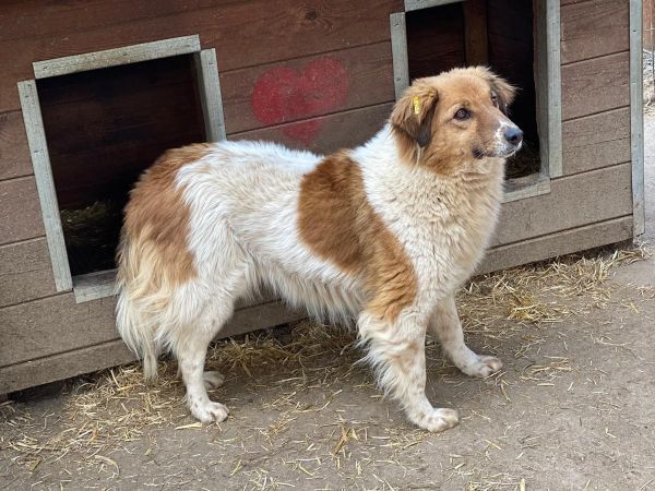 PRYA ist nun in einen Außenkennel umgezogen. Sie lebt dort mit drei Rüden zusammen und zeigt sich verträglich. Ihre Unsicherheit uns gegenüber ist weiterhin spürbar, aber Leckerlies nimmt sie weiterhin neugierig vom Boden auf. Bedrängen wollten wir sie nicht weiter, sie wich uns dann hinter die Hütte aus.
