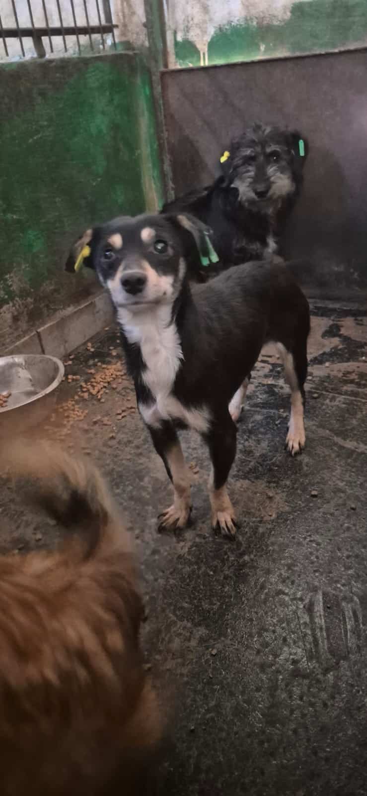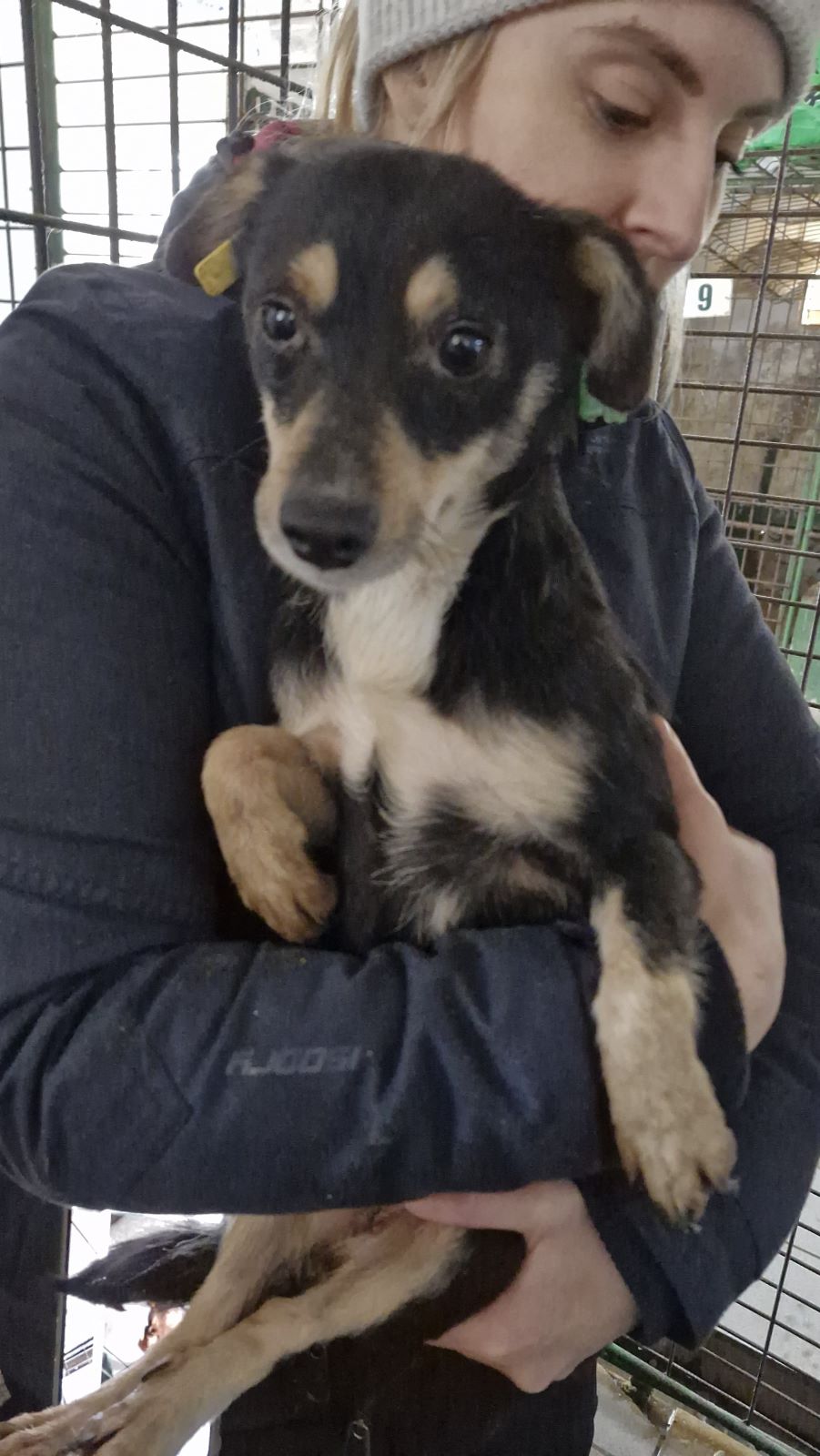 Diese kleine, zarte Hündin mit Pinscher-Optik ist sehr fein gebaut und aktuell zu dünn. Anfangs war sie etwas zurückhaltend, taute dann aber sehr schnell auf. Sie ist freundlich, zutraulich und lässt sich gut anfassen. Typisch Junghund zeigte sie sich auch verspielt, besonders wenn sie sich sicher fühlte. Im gemischten Rudel ist sie verträglich. Sie sollte schnell ausreisen, da kleine und zarte Hunde es im bevorstehenden, rumänischen Winter nochmal besonders schwer haben.