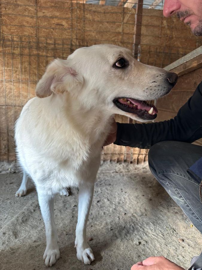 Update 07/23: Der wunderschöne, schneeweiße Hundebub hat dieses Leben einfach nur satt, es stresst ihn und er braucht etwas Zeit, um zu verstehen, dass es auch so was wie Ruhe und Liebe gibt. Das Spielen mit den Geschwistern lenkt ihn ab und da zeigt sich Pufos auch welpentypisch neugierig. Gern lässt sich der freundliche Pufos überall anfassen und vertraut den Menschen. Für ihn wäre es sehr dringend, dass er schnell gesehen wird.
