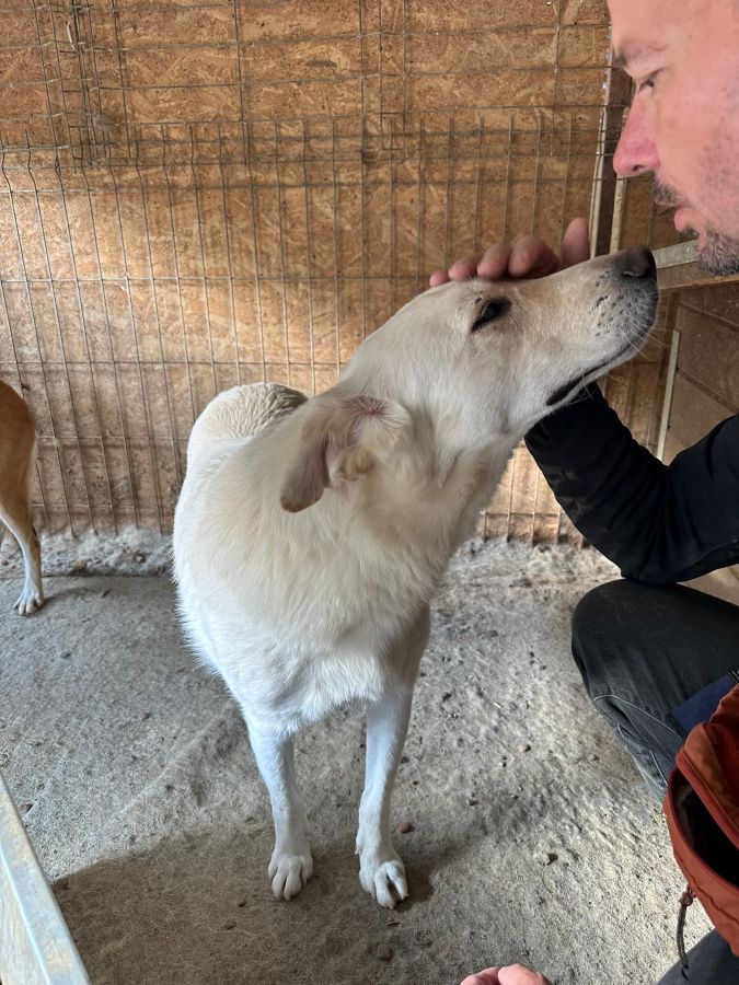PUFOS ist ein wunderschöner Rüde, der uns gleich freudig begrüßte. Menschen gegenüber ist er offen, freundlich und genießt jede Streicheleinheit, als wollte er all die Zuneigung nachholen, die ihm so lange gefehlt hat. Leider kommen viel zu selten Besucher ins Shelter, und so bleibt seine Sehnsucht nach Nähe oft unerfüllt.