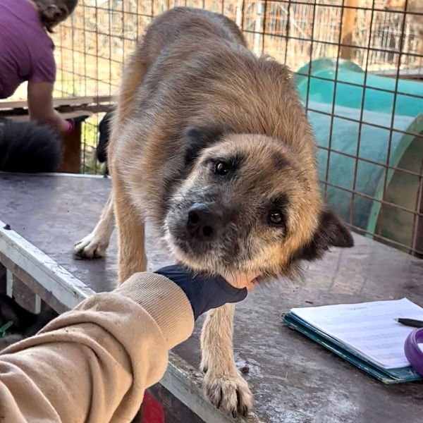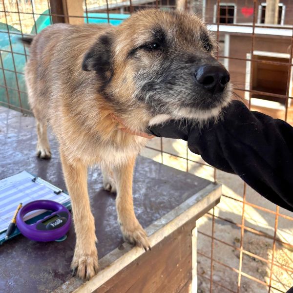 Dieser süße, kleinere Rüde ist ganz neu im riesigen Shelter und zeigte sich uns gegenüber direkt offen und sehr freundlich. In seiner frisch zusammengesetzten, gemischten Gruppe wirkt X verträglich. Da in die Nachbarkennel auch gerade neue Hunde gesetzt und Bauarbeiten an den Kenneln durchgeführt wurden, war die Aufregung groß. Neugierig beobachtete der liebe Bub das Geschehen, holte sich immer wieder Streicheleinheiten ab und genoss diese sichtlich. Er schmatzte genüsslich und schmiegte sein niedliches Köpfchen an unsere Hände. Für den zarten X hoffen wir, dass er schon bald von seinen Menschen gesehen wird und auf der Sonnenseite losleben darf.