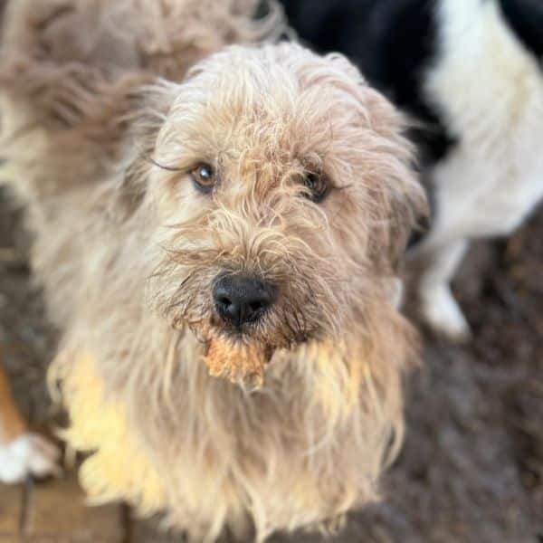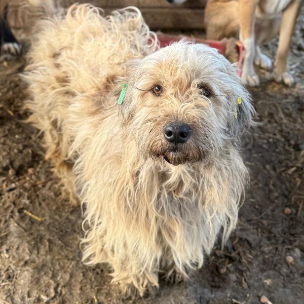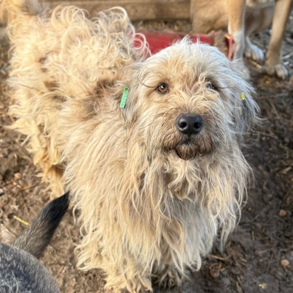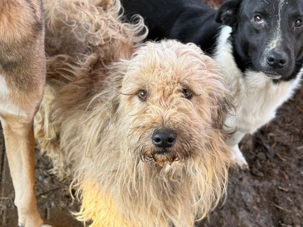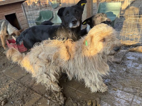Dieser freundliche Rüde ist noch neu im Shelter und zeigt sich aber sehr offen und zugänglich. Trotz seines verfilzten Fells und der Tatsache, dass er im Moment etwas zu dünn ist, begegnet er Menschen ruhig und nett. Er lässt sich überall anfassen, genießt die Aufmerksamkeit und freut sich sichtlich über Leckerlies. Dabei bleibt er höflich und nicht aufdringlich, sondern sucht sanft den Kontakt. Mit ein wenig Pflege und Zuwendung gewinnt man mit ihm bestimmt ein Freund fürs Leben. In seinem gemischten Rudel zeigt er sich sehr verträglich.