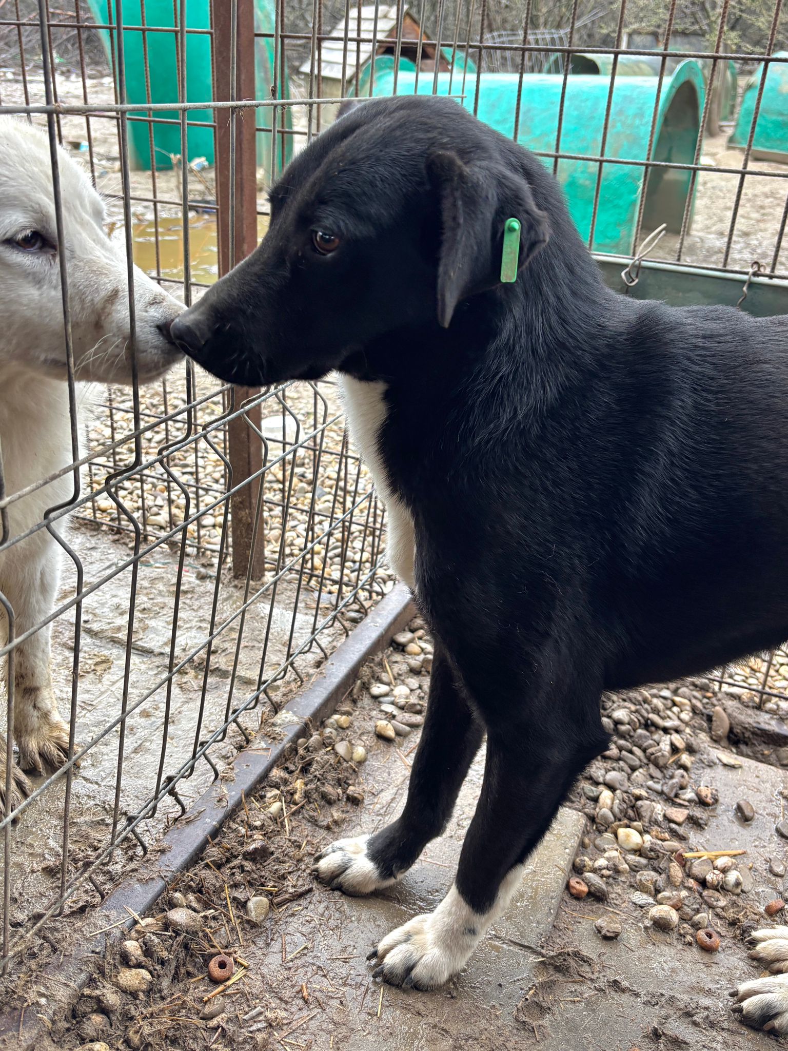 Dieser zarte Hundebub ist schon etwa ein Jahr im riesigen Shelter, wurde jedoch jetzt erst für die Galerie erfasst. X beäugte uns zunächst aus seiner sicheren Hütte heraus und schien interessiert an unserem Tun. Als wir uns näherten, verließ er die Hütte und hielt einen gewissen Abstand zu uns ein. Unter Bedrängung konnten wir X gut streicheln, jedoch kam er schlecht zur Ruhe und suchte stets einen Ausweg. Wir wünschen dem hübschen Jungen, dass er rasch von verständigen Menschen gesehen wird, die ihn an ein Zusammenleben auf der Sonnenseite heranführen. Damit er losleben und all das nachholen darf, was er bisher verpasst hat.