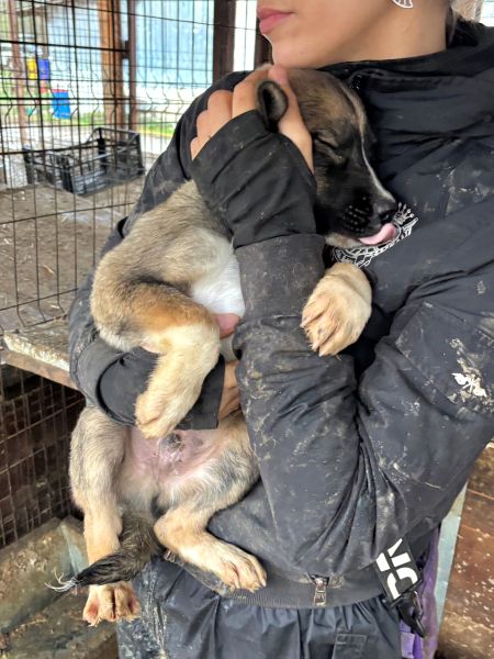 | Wesen & Zutraulichkeit (Character & Trustworthiness) | welpentypisch (typical for puppies), verspielt (playful), offen (open), freundlich (friendly), neugierig (curious), gerne anfassbar (likes to be touched), zutraulich (trustful) |