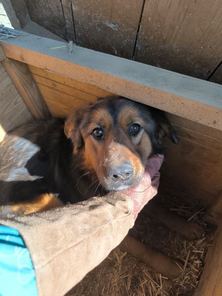 Dieser Rüde versteckte sich vor uns in der Hütte, als wir den Kennel betraten. Er nahm aktiv keinen Kontakt zu uns auf. Man merkte ihm seine Unsicherheit dem Menschen gegenüber deutlich an. Als wir zu ihm unter Bedrängung in der Hütte Kontakt aufnahmen, zeigte er keinerlei Abwehrverhalten, sondern ließ die Berührungen tapfer aber unsicher über sich ergehen, genießen konnte er sie nicht. Für diesen Rüden suchen wir sehr erfahrene Menschen, die dem Kerl mit Zeit, Liebe und Geduld den Weg aus seiner Unsicherheit heraus zeigen.