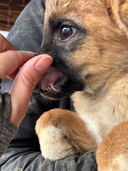 | Wesen & Zutraulichkeit (Character & Trustworthiness) | welpentypisch (typical for puppies), verspielt (playful), offen (open), freundlich (friendly), neugierig (curious), gerne anfassbar (likes to be touched), zutraulich (trustful) |