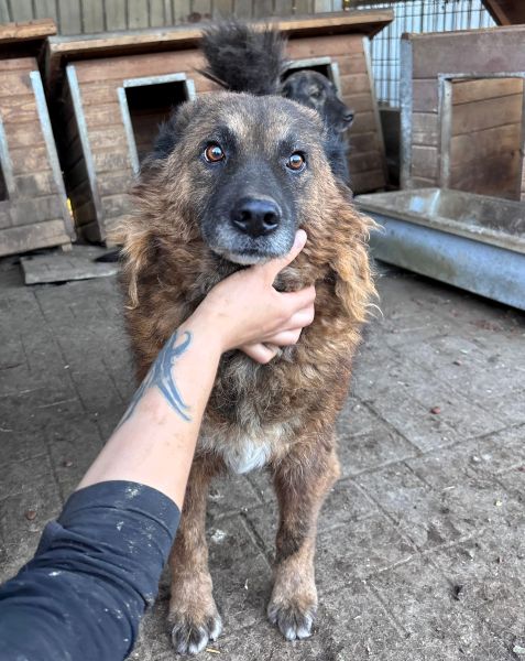 Dieser süße Rüde ist neu im Shelter und hielt sich während unseres Besuchs zunächst lieber im Hintergrund. X ließ den aufgeweckten Hunden den Vortritt – auf Trubel und Hektik kann er anscheinend gut und gern verzichten. Als wir uns ihm schließlich zuwandten, zeigte X sich als ganz sanfter Hundemann, der sich nach Zuwendung und Geborgenheit sehnt. Mit glänzenden Äuglein blickte er uns an und genoss den Moment der seltenen Zuwendung. Sein tolles Fell ist stellenweise verfilzt und sehr dicht – er ließ sich sogar liebevoll von einem anderen Rüden putzen. Einiges an Filz konnten wir abschneiden, doch die kommende, nass-kalte Jahreszeit wird vermutlich hart für X, weshalb wir ihm sehr wünschen, dass er rasch gesehen wird und den Winter gebürstet und in einem warmen Körbchen verbringen darf. Mit seinem angenehmen Wesen hat er uns sehr berührt. In seiner gemischten Gruppe, welche neu zusammengesetzt wurde, zeigte X sich ausgesprochen verträglich.