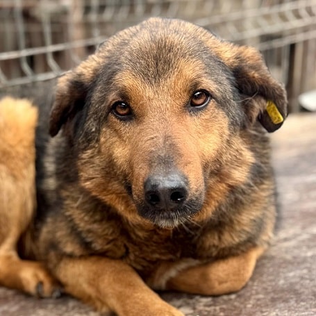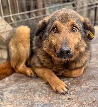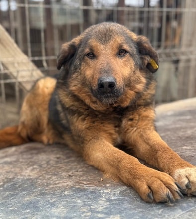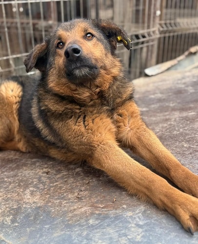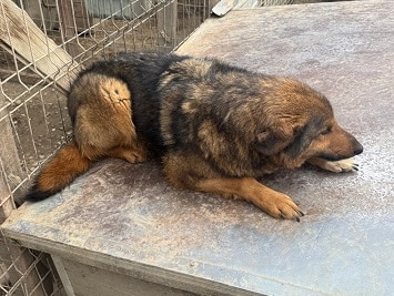 Dieser tolle Rüde lag anfangs entspannt auf dem Hüttendach, als wir seinen Kennel betraten. Er ließ sich dort überall anfassen und streicheln und nahm Leckerchen vorsichtig aus der Hand. Er ist ein sanfter, ruhiger Hund, der offensichtlich nur seine Ruhe haben möchte.