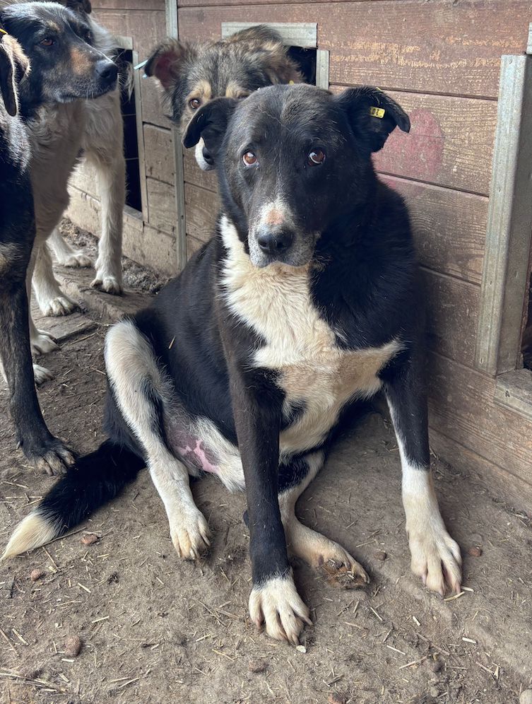 Dieser süße, ältere Rüde ist vermutlich neu im riesigen Shelter und lag beim Betreten des Kennels gemütlich im Futtertrog. Von dort aus beobachtete X interessiert, wie wir uns mit den anderen Hunden beschäftigten. Als wir die Leckerlie auspackten, war sein Interesse geweckt und er kam gern heran, um sie sich aus der Hand zu holen. Für mehr Nähe fehlt X noch die Erfahrung im direkten Umgang, denn er wich stets zurück, wenn wir ihn anfassen wollten. Für diesen herzigen Oldie suchen wir verständige Menschen, die sein Vertrauen gewinnen und ihm einen schönen Lebensabend auf der Sonnenseite bereiten wollen. Aktuell ist X leider zu dick. In seiner gemischten Gruppe zeigt er sich ausgeglichen und verträglich, sodass er sicher von einem netten Ersthund profitieren würde.