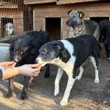 Auch Ramon ist etwas aufgetaut und kam neugierig bei uns an um sich Leckerchen abzuholen. Dabei blieb er jedoch stehts in der zweiten Reihe im Windschatten von seinem Kollegen. In einem verständigen Zuhause hätte er die Chance umsetzen zu können, dass es gut sein kann, sich auf uns Menschen einzulassen.