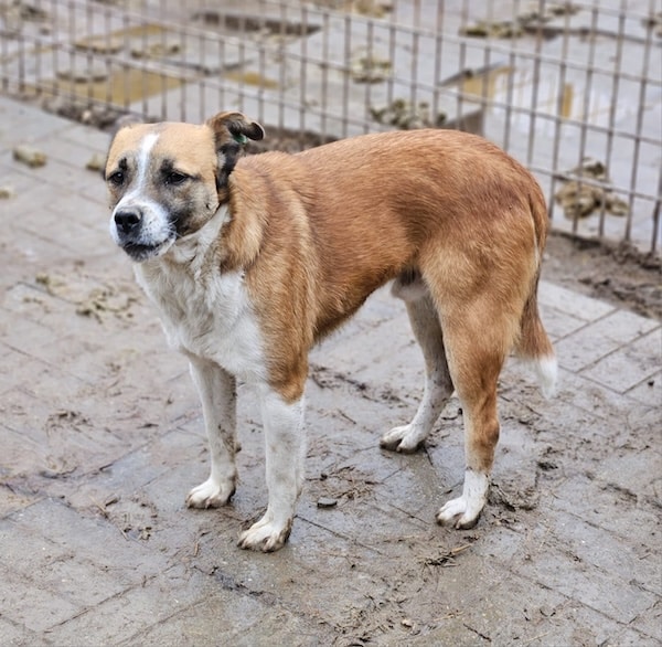 Der kleine Hundemann wird sicherlich nicht viele positive Erfahrungen mit uns Menschen gemacht haben. Zudem sitzt er mit anderen unsicheren Hunden in einem Kennel.