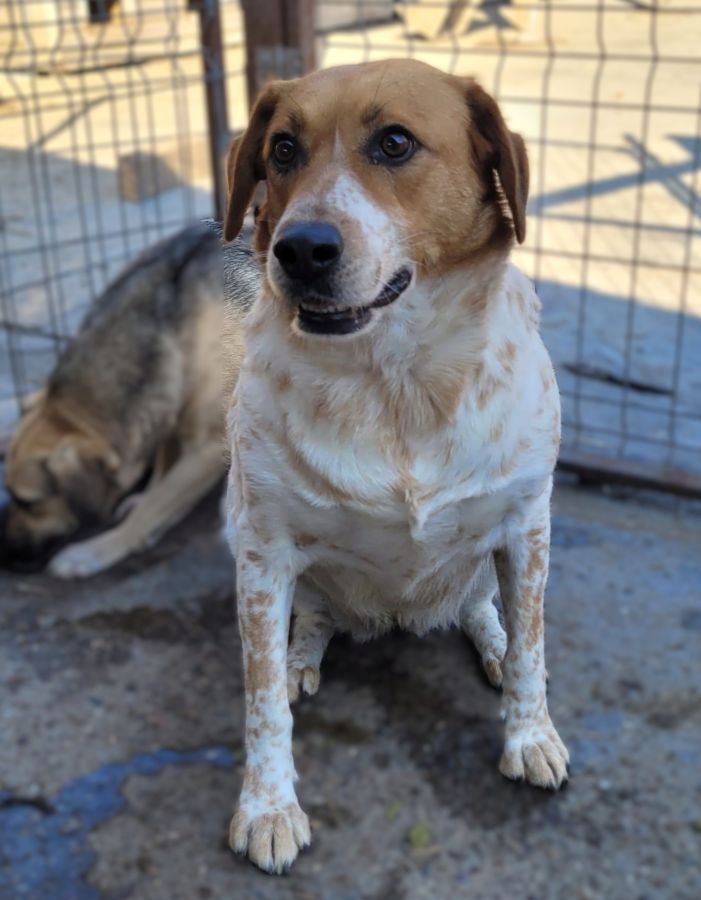 REBA ist sehr gut verträglich mit anderen Hunden und derzeit etwas übergewichtig, dennoch wirkte sie bei unserem Besuch sehr agil und lebhaft.