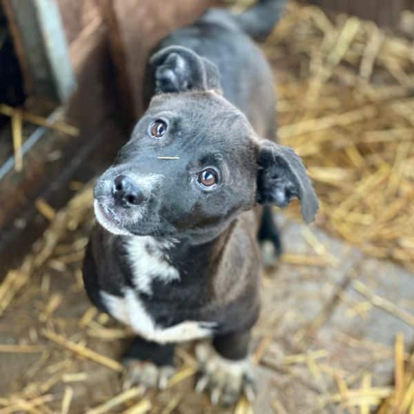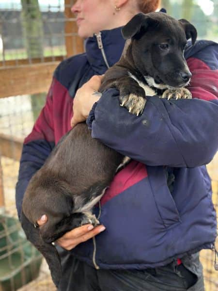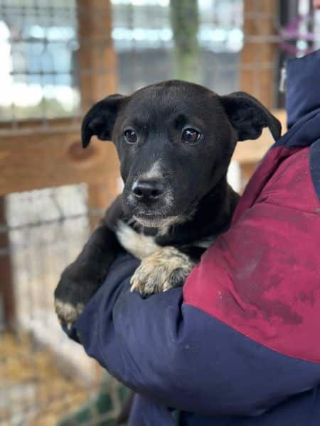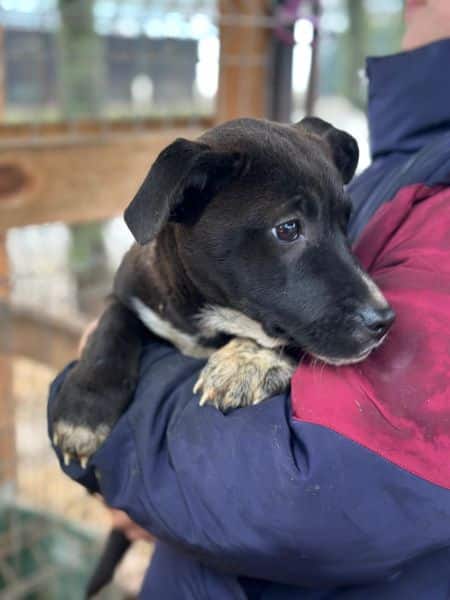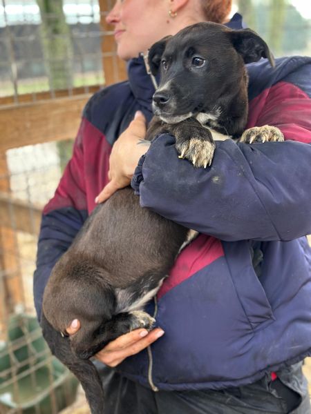 | Wesen & Zutraulichkeit (Character & Trustworthiness) | welpentypisch (typical for puppies), verspielt (playful), offen (open), freundlich (friendly), neugierig (curious), überall anfassbar (touchable everywhere) |