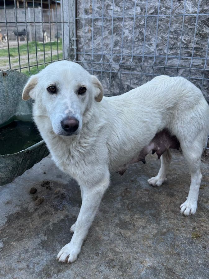 Die kleine RIGANI ist eine ganz besondere Hündin. Im Kennel zeigte sie sich ruhig, sanft und angenehm zurückhaltend. Ihr ausgeprägtes Gesäuge lässt vermuten, dass sie erst vor Kurzem Welpen hatte, umso mehr berührt ihre liebevolle und ausgeglichene Art.