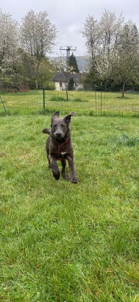 | Wesen & Zutraulichkeit (Character & Trustworthiness) | welpentypisch (typical for puppies), verspielt (playful), offen (open), freundlich (friendly), neugierig (curious), gerne anfassbar (likes to be touched), überall anfassbar (touchable everywhere), nimmt Leckerchen (takes goodies), zutraulich (trustful) |