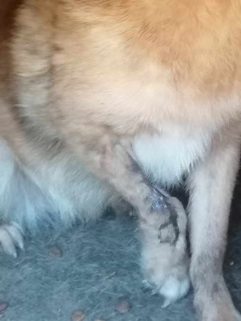 | zur Besonderheit: | große Narbe am rechten Vorderbein, rechtes Vorderbein schief, ein kleiner Teil des linken Ohres fehlt |