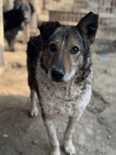Der niedliche Senior ROHAN mit seinem gelockten Fell wartet bereits seit 4 langen Jahren im riesigen Shelter auf seine Chance. Er zeigte sich bei unserem aktuellen Besuch erneut sehr interessiert und futtermotiviert. Anfangs nahm er die Leckerlie lieber vom Boden auf, doch mit etwas Geduld traute er sich schließlich, sie direkt aus der Hand zu nehmen. ROHAN beobachtete uns aufmerksam und neugierig und hielt sich dabei stets in unserer Nähe auf – eine schöne Entwicklung, die zeigt, dass er vorsichtig Vertrauen aufbaut. Wenn wir ihn beim Füttern mit unserer Hand am Körper berührten, erstarrte er zwar für einen Augenblick und man sah ihm deutlich an, dass er diese intensive Nähe noch nicht einordnen kann, da er sie nicht kennt. Er blieb jedoch tapfer stehen, naschte dann weiter unsere Leckerlie und zeigte keinerlei Abwehr – ein leiser, aber klarer Ausdruck von Annäherung und Interesse. ROHAN braucht Menschen mit Geduld und Feingefühl, die ihm die Zeit geben, in seinem Tempo Vertrauen zu fassen. Ein aufgeschlossener und freundlicher Ersthund im neuen Zuhause würde ihm die Eingewöhnung sicher erleichtern.