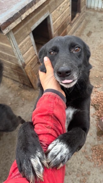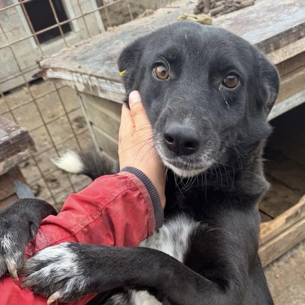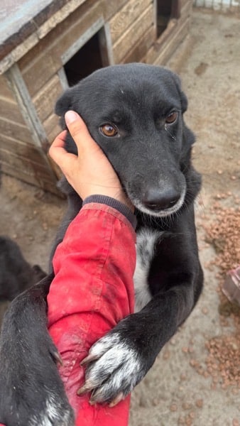 Bei unserem Besuch lag die süsse Hündin zunächst ganz ruhig in der Hütte und schlief tief und fest. Als wir sie geweckt haben, hat sie sich sichtlich über die Streicheleinheiten und unsere Zuwendung gefreut. Von da an wich sie uns nicht mehr von der Seite – ganz eng bei uns, aber nie aufdringlich. Das Mädel ist eine sehr ruhige, ausgeglichene Hündin, die Nähe genießt, ohne sich in den Vordergrund zu drängen.