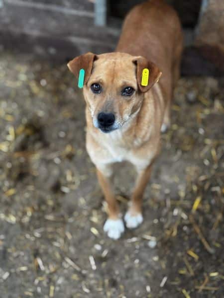 Der hübsche Hundebub ROSCO scheint noch recht neu im Shelter zu sein. Er ist aktuell mit der gesamten Situation noch überfordert, holt sich aber durchaus schon die mitgebrachten Leckerchen vorsichtig aus der Hand. In der Hütte konnten wir ihn anfassen; draußen allerdings fühlte er sich wohl von uns bedrängt und schnappte nach uns. Mit Liebe und Geduld wird der hübsche Kerl bestimmt schnell lernen können, dass Streicheln etwas Schönes ist und sich schnell an menschliche Nähe gewöhnen.