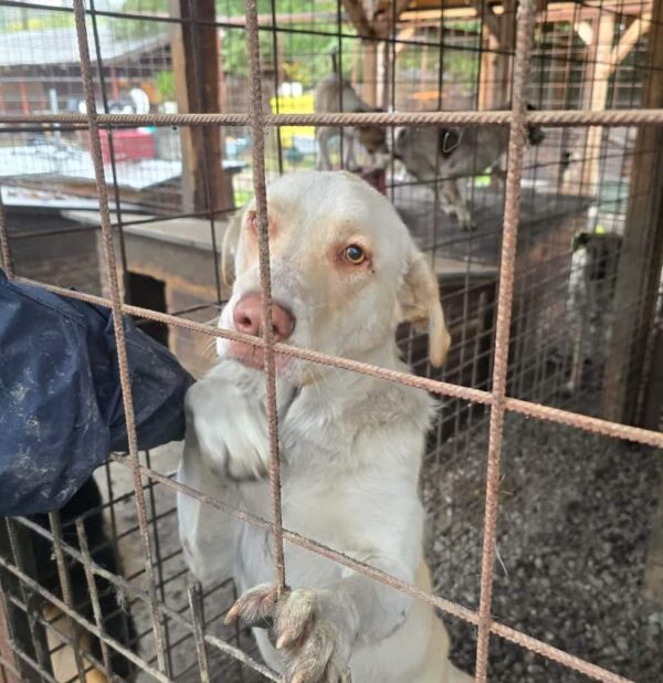 In dem trostlosen Zwinger haben wir einen wunderschönen, unglaublich liebevollen Rüden angetroffen. Seine Augen suchten verzweifelt nach Nähe, nach einem Funken Zuneigung – und als wir ihm ein paar Streicheleinheiten schenkten, konnte er gar nicht genug davon bekommen.