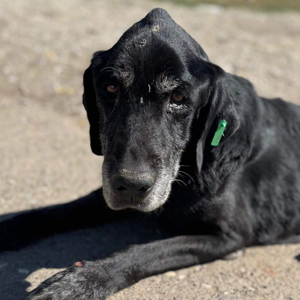 Der alte Opi RUDY wurde ausgesetzt und muss nun zusehen, wie er mit dem Leben in einem großen Shelter wie Buov zurechtkommt. Sein Allgemeinzustand ist erschütternden. Er ist stark abgemagert, hat große Liegeschwielen und kann sich kaum auf den Beinen halten. Sein Gangbild ist katastrophal. Und doch, als wir uns ihm vorsichtig näherten, blühte er kurz auf. Er nahm unsere Leckerchen gerne aus Hand und ließ sich von uns überall streicheln. Sobald wir wieder in seine Nähe kamen, nahm er ruhig und sanft selbständig Kontakt zu uns auf und legte sich dann meist direkt neben uns. Trotz allem, was er erlebt haben muss, schien er uns Menschen weiterhin zu vertrauen.