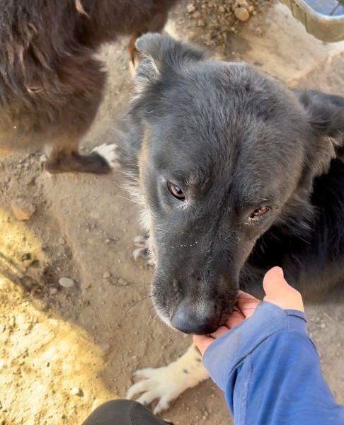 Dieser wunderschöne Herdenschutzmischlingsrüde war neugierig und offen. Für die Leckerchen konnten wir ihn sogar dazu bewegen hoch zu springen ohne uns dabei zu berühren. Er achtet selbst bei diesen Leckerchenspielchen auf eine Individualdistanz. Sehr angenehm. Insgesamt wirkt er ausgeglichen und freundlich. Er fand unsere Leckerchen mega, so dass man eine tolle Trainingsbasis hat. Vorsichtig anfassen ist bereits möglich, aber das sollte mit einem Vertrauensaufbau über mehrere Tage erfolgen. Das aufgrund seiner Größe und seines Rassemixes sehr gute Hundeerfahrung möglichst mit HSH vorhanden sein sollte, versteht sich von selbst, genauso wie keine Etagenwohnung in Frage kommt. Er scheint verträglich zu sein, denn er lebt mit einem weiteren Rüden zusammen. Aber weitere Hunde dürften für ihn nicht so wichtig sein. Sein Hauptinteresse gilt bereits jetzt dem Menschen.