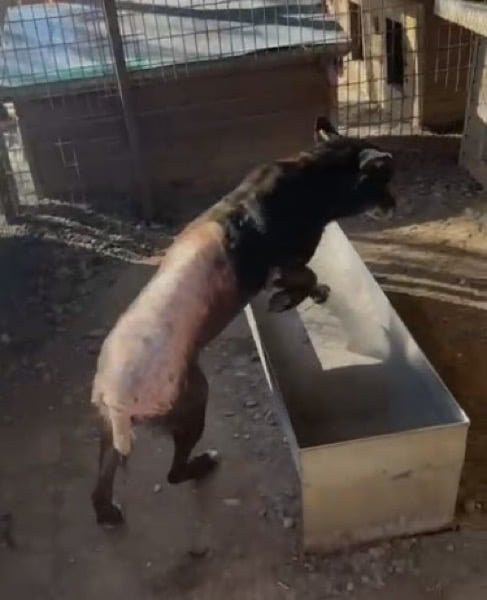 6 lange Jahre sitzt die arme Saddy nun schon ihre Zeit in Bucov ab und hat jetzt zu allem Überfluss auch noch schlimme Hautprobleme bekommen. Sie ist am Rücken vollständig nackt. Uns Menschen gegenüber ist Saddy weiterhin unsicher, wir konnten sie aber in der Hütte streicheln und sie zeigte dabei keinerlei Abwehrverhalten.