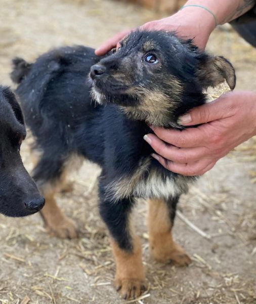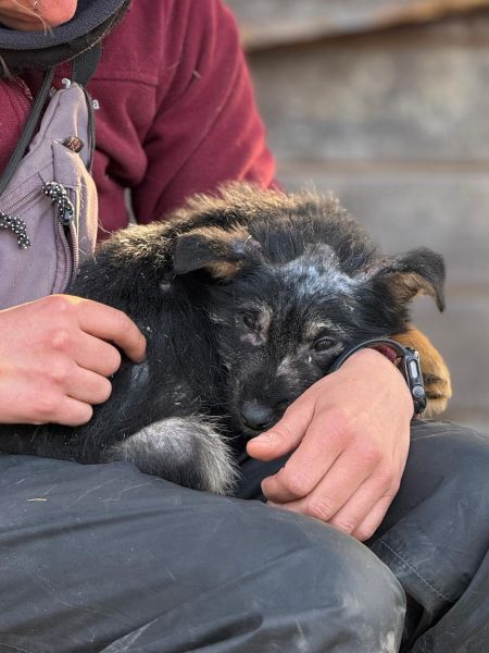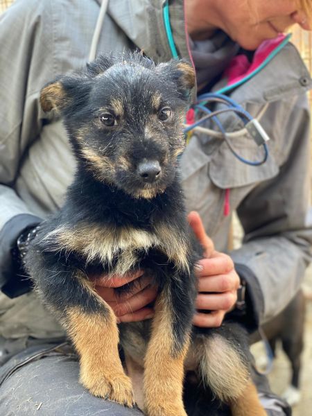 SAKURA hatte mit Hautproblemen zu kämpfen und wurde bereits entsprechend behandelt. Inzwischen musste sie vom Container in einen Außenkennel umziehen, auch wenn sie aktuell noch fast nackt ist. Davon lässt sie sich aber nicht unterkriegen: Sie zeigt sich nett, verschmust und welpentypisch zutraulich.