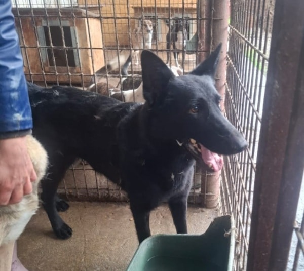 Zurzeit teilt sie sich ihren kleinen Kennel mit einem Rüden, der dort das Sagen hat. Sie verhält sich ihm gegenüber freundlich und zurückhaltend. Über unsere mitgebrachten Leckerlis freute sie sich sehr und nahm sie vorsichtig aus der Hand – ein Zeichen ihres guten Charakters und ihres Vertrauens.