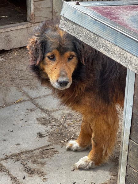 SANCHO ist uns gegenüber leider wieder unsicherer geworden. Leider gab es einen Tag vor unserem Besuch eine Beißerei zwischen ihm und einem anderen Rüden im Kennel, wodurch Sancho leicht verletzt wurde. Wenn wir auf ihn zugingen, wich er uns aus und versuchte sich hinter der Hütte zu verstecken. Wir suchen daher erfahrene Menschen im Umgang mit unsicheren Hunden, die Sancho die Möglichkeit geben, in Ruhe anzukommen und Vertrauen in den Menschen aufzubauen. In seinem Rudel lebt er mit Rüden, dort zeigt er sich grundsätzlich verträglich. Eine Aussage über die Verträglichkeit mit Hündinnen kann derzeit nicht getroffen werden.