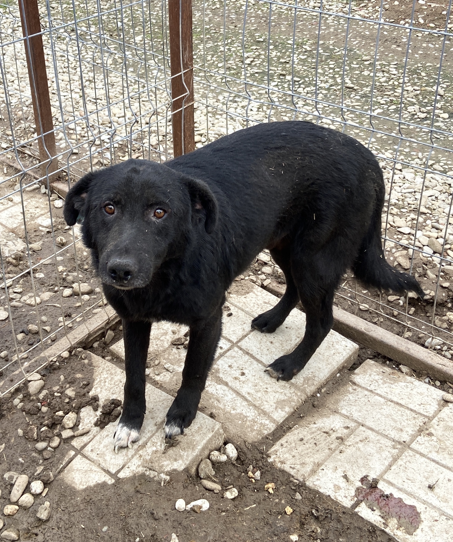 SANTIO ist leider weiterhin unsicher und scheu. Der fehlende menschliche Kontakt ist spürbar bei ihm. Er nahm Leckerlie in unserer Anwesenheit vom Boden, hielt aber immer Abstand von uns und beobachtete uns aus sicherer Entfernung. Aktuell lebt er mit weiteren Rüden zusammen, wir schätzen ihn als verträglich ein. SANTIO benötigt viel Eingewöhnungszeit, Geduld und einen souveränen Ersthund.