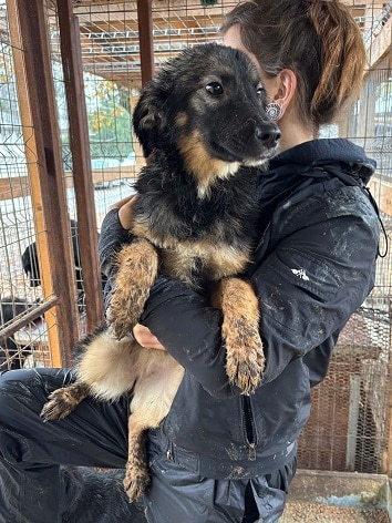 SAPHIRA hat sich zu einer zauberhaften, süßen Junghündin entwickelt. Sie lebt mit vielen anderen Junghunden in einem vollen Kennel – Trubel, Lärm und Dreck sind aktuell ihr Alltag. Kein Wunder also, dass die Freude groß war, als Besuch kam und Abwechslung brachte.