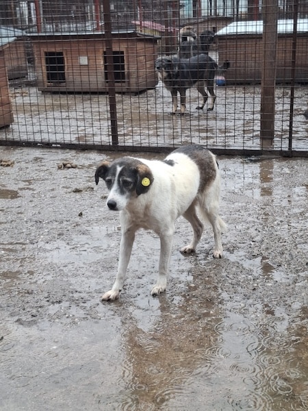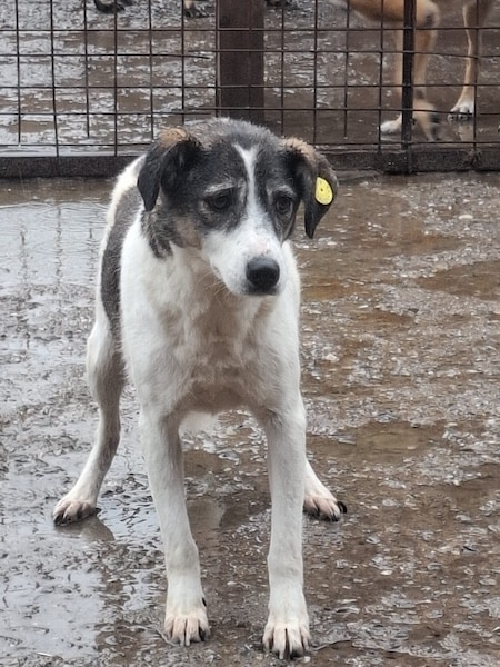 Sie sitzt mit lauter unsichereren Hunden im Kennel, so dass sie auch kein Vorbild hat. Wir denken aber, dass sie bei sehr erfahrenen Menschen, idealerweise mit souveränem Ersthund, nach Eingewöhnungszeit zutraulicher werden würde. Wir hoffen, dass sie bald gesehen wird.