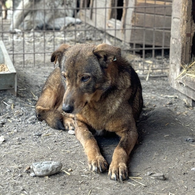 Die zarte SEITANA beobachtete uns bereits aufmerksam, während wir noch im Nachbarkennel zu tun hatten. Dabei lag sie ruhig mitten im Kennel. Als wir diesen betraten, zog sie es vor, einen selbst gewählten Sicherheitsabstand zu uns einzuhalten. Unsere mitgebrachten Leckerlie nahm sie lieber vom Boden als aus der Hand, jedoch fraß sie diese ruhig in unserer Anwesenheit. Ein kleiner Hoffnungsschimmer und Beweis, dass sie uns gerne vertrauen möchte… SEITANA litt bei unserem Besuch leider stellenweise an einem Hautpilz, der jedoch bereits behandelt wird. Für diese betagte Dame, die nun bereits den Großteil ihres Lebens hinter Gittern verbringen musste, wird es höchste Zeit, dass sich liebe und erfahrene Menschen finden, die sie an die Pfote nehmen und behutsam auf die Sonnenseite des Lebens führen. Eine ruhige Umgebung würde ihr sicher schon so viel Geborgenheit vermitteln, dass sie bald auftauen und mehr Nähe zulassen würde. Von einem souveränen Ersthund könnte sie sich abschauen, wie schön es sich mit uns Menschen lebt.