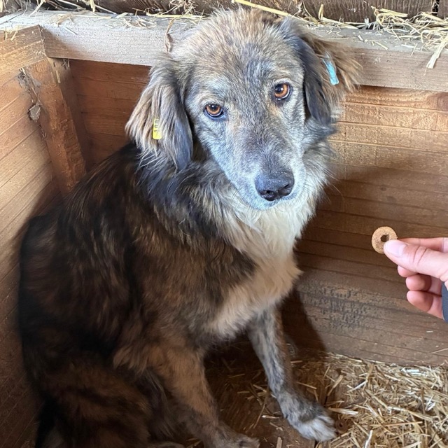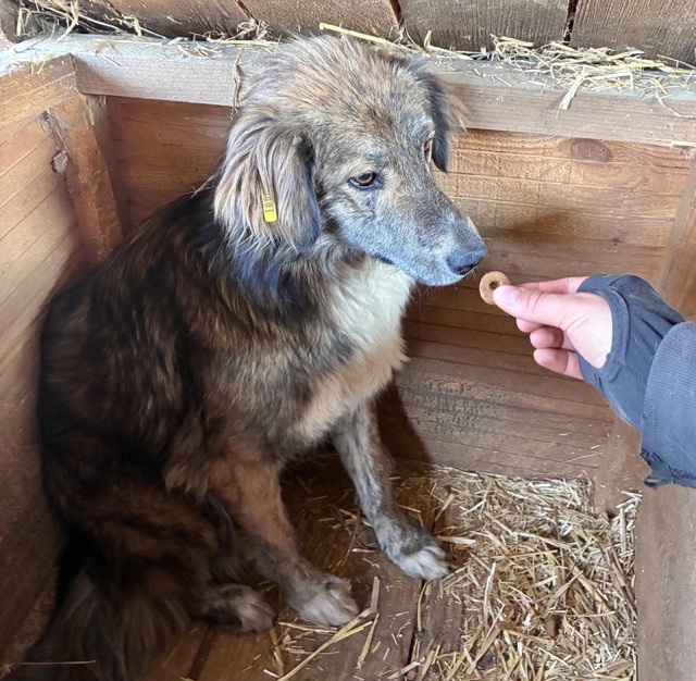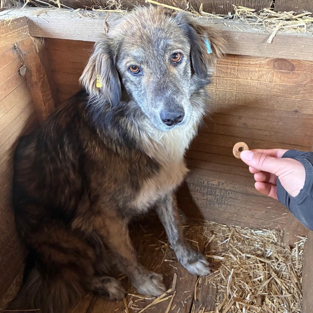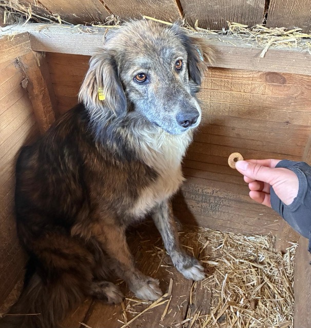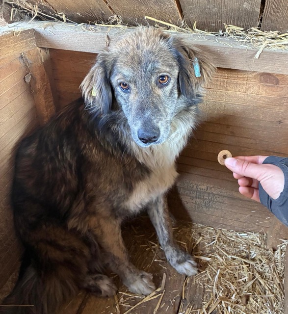 Seit mehr als 2 langen Jahren hofft unsere hübsche SETARE mit dem toll gestromten, seidigen Fell ungesehen im riesigen Shelter auf ihr Glück. In dieser Zeit hatte sie so gut wie keinen Menschenkontakt und zeigte sich auch bei diesem Besuch entsprechend unsicher. Unsere Anwesenheit gruselte SETARE sichtlich und im Kennel wich sie jeder Annäherung stets aus. In der sicheren Hütte jedoch konnten wir sie behutsam streicheln, was die sensible Maus tapfer über sich ergehen ließ. Mit großen Äuglein, die voller Skepsis aber auch Hoffnung sind, schaute sie uns an. Wir wünschen SETARE, dass sie von einfühlsamen und erfahrenen Menschen gesehen wird, die sie in Geborgenheit ankommen lassen und an ein Zusammenleben auf der Sonnenseite heranführen. Mit ausreichend Zeit und der Hilfe eines netten Ersthundes wird sie sicher bald Fortschritte machen und Vertrauen fassen können. Wir sind uns sicher, dass in SETARE eine treue Begleiterin steckt, die nur auf ihre Chance wartet, entdeckt zu werden und aufblühen zu dürfen. Wir wünschen ihr diese Chance sehr.