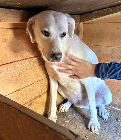 Unsere süße SETAREH hofft seit Monaten mit ihren Geschwistern im riesigen Shelter auf ihre Chance. Leider macht der fehlende Menschenkontakt sich bemerkbar und obwohl sie sich zwischen und mit den anderen Hunden sehr über unseren Besuch freute und immer wieder freudig angelaufen kam und schnupperte, zog SETAREH sich lieber in die sichere Hütte zurück, als wir uns ihr weiter näherten.