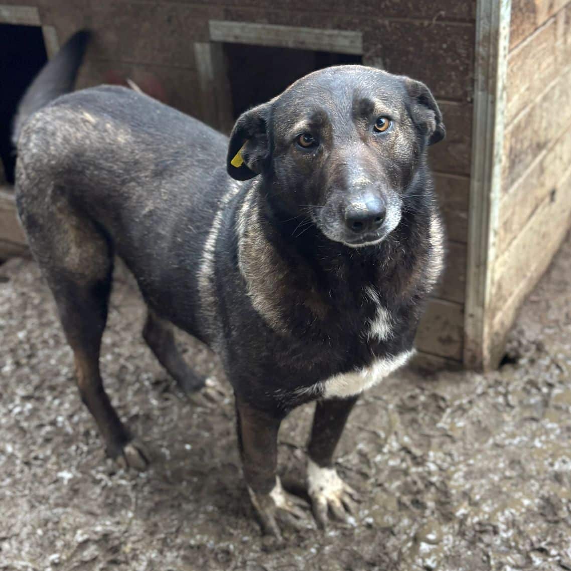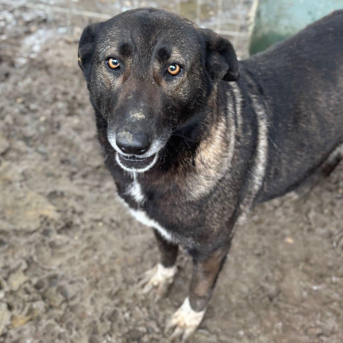 Diese bildhübsche Hündin mit den strahlenden Augen und der niedlichen Schnute ist neu im riesigen Shelter und zeigte sich bei unserem Besuch sehr neugierig, wenn auch noch etwas skeptisch. SHERRY wuffte uns aus Unsicherheit an und schien nicht recht einordnen zu können, was wir in ihrem Kennel wollen. Interessiert beobachtete sie, wie wir uns mit den anderen Hunden beschäftigten und kam immer wieder ganz nah und zum Schnuppern heran. Dabei konnten wir sie zaghaft mit den Fingern an der Schnute berühren, bei mehr Bedrängung wich sie jedoch stets zurück. Wir verzichteten in diesem Kennel mit mehreren großen Hunden darauf, Leckerlie zu verteilen – gehen aber davon aus, dass man damit sicher ihr Vertrauen gewinnen könnte. SHERRY ist generell interessiert an uns, scheint den direkten Kontakt nur einfach nicht zu kennen. Für sie suchen wir verständige Menschen, die ihr das Zusammenleben auf der Sonnenseite zeigen. Da die Anwesenheit anderer Hunde ihr Sicherheit gibt und sie sich sehr verträglich zeigte, wäre mindestens ein netter Ersthund sicher eine große Stütze für SHERRY.