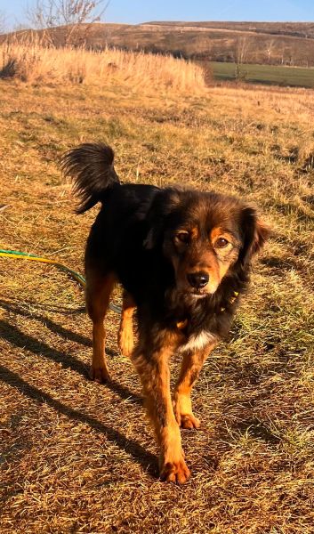 Kommt dann doch mal ein anderer Vierbeiner, zeigt sie sich freundlich, neugierig und geht einem Streit aus dem Weg. Sehr junge flippige Hunde versucht sie auszubremsen und Ruhe in die Situation zu bringen.