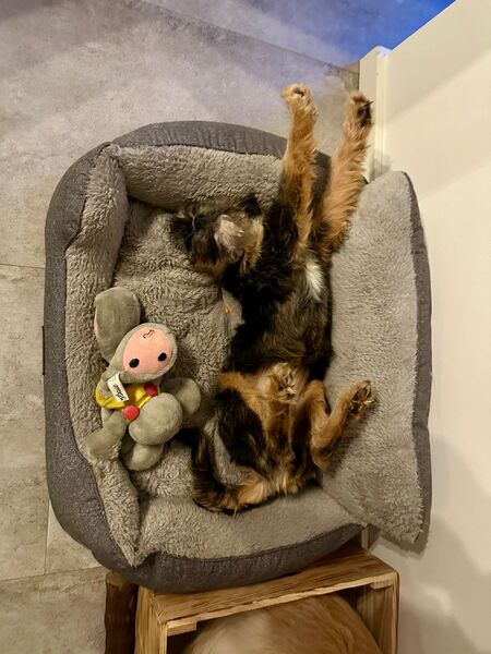 Autofahren klappt bereits problemlos, auch der erste Einkauf im Fressnapf sowie der Tierarztbesuch hat sie souverän gemeistert. So verspielt sie draußen ist, so sehr liebt sie auch die Kuschelzeiten. Mit unseren Hunden versteht sie sich bestens, ebenso mit der Katze. Und wenn die Hunde einmal keine Lust zum Spielen haben, wird kurzerhand mit der Katze fröhlich durchs Haus geflitzt.